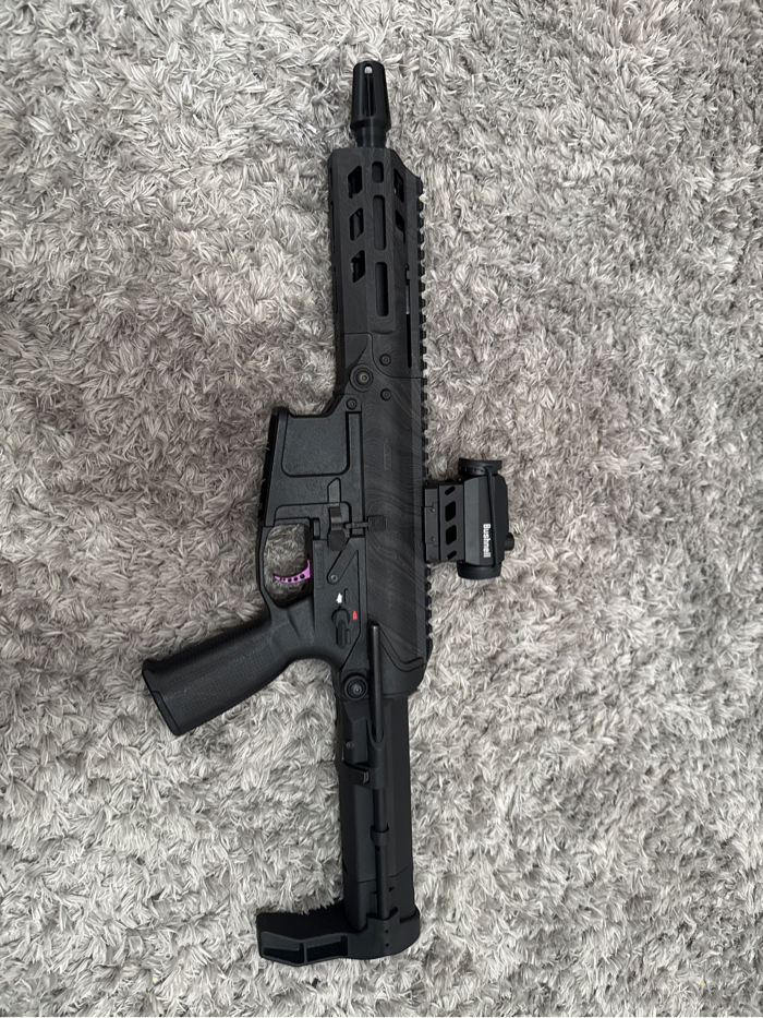 This gun can shoot up to 40 rps on full auto. Comes with one battery and the gun itself, scope not included. Atleast $650 of internal parts in the gun. Also comes with a speed trigger that’s very light. Gun shoots great.