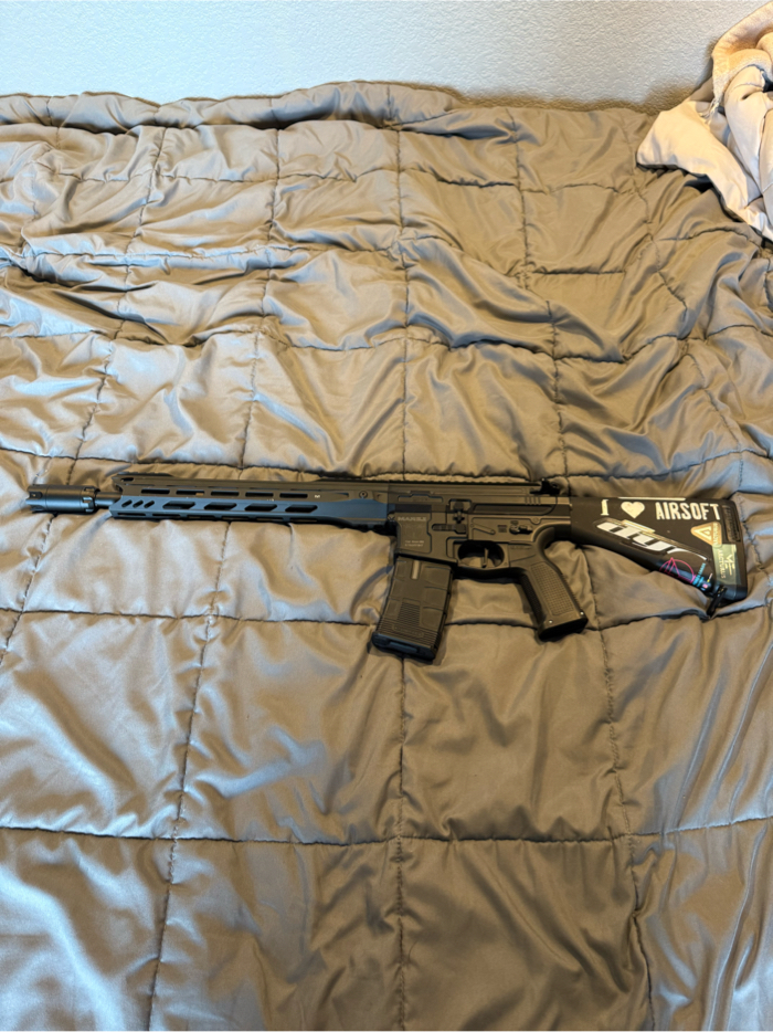 Aeg rifle has stubby stock and tracer unit also comes with mags need gone asap!