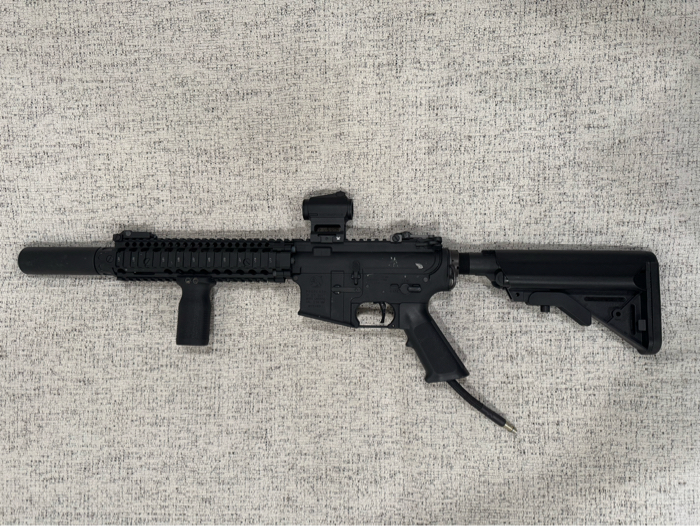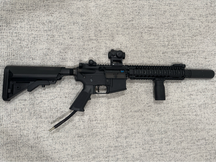 Custom built by bloomies airsoft colt mk18 Polarstar F2 Maxx m4p 363 6.05 edgi barrel Bloomies reinforce grip line Foam filled suppressor Vortex crossfire red dot Magpul more grip