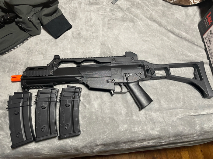 A barely used G36C with the batteries included. Along with two high capacity mags and one mid cap that are included in this bundle. Everything still works. Flashlight not included.