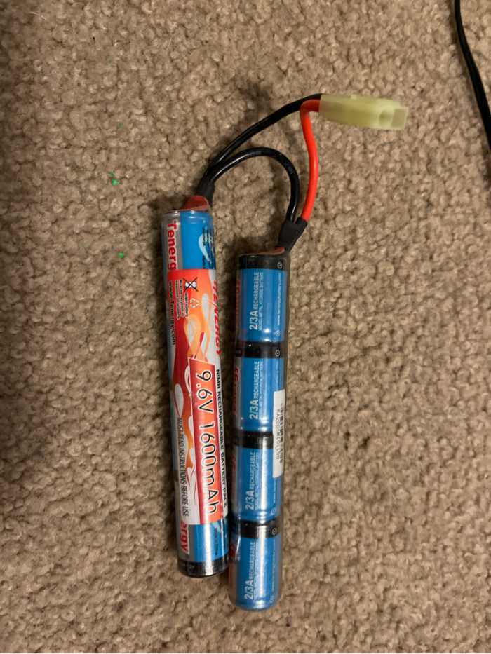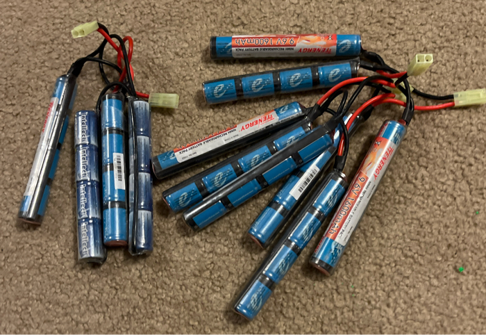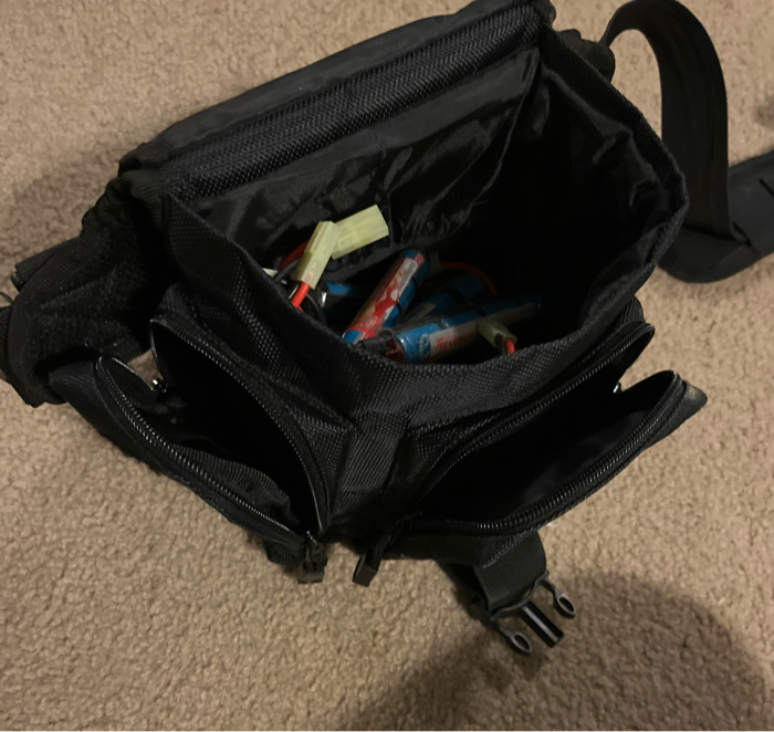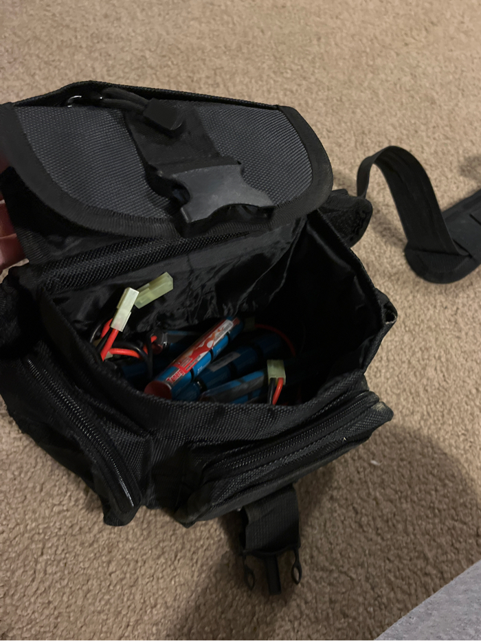 6 1600mAH 9.6v batteries with a charger. Black belt waist bag.