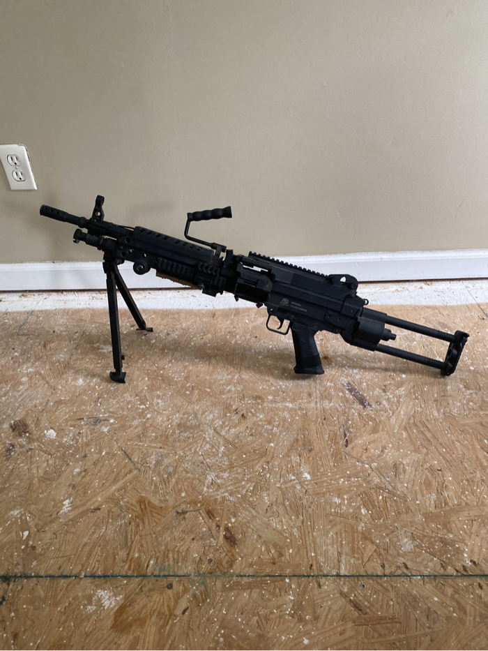 Slightly used, don’t know if it has any upgrades. Just not my style gun. It’s the cyber gun m249 featherweight and the electric winding drum mag from Evike that’s about 100 bucks.
