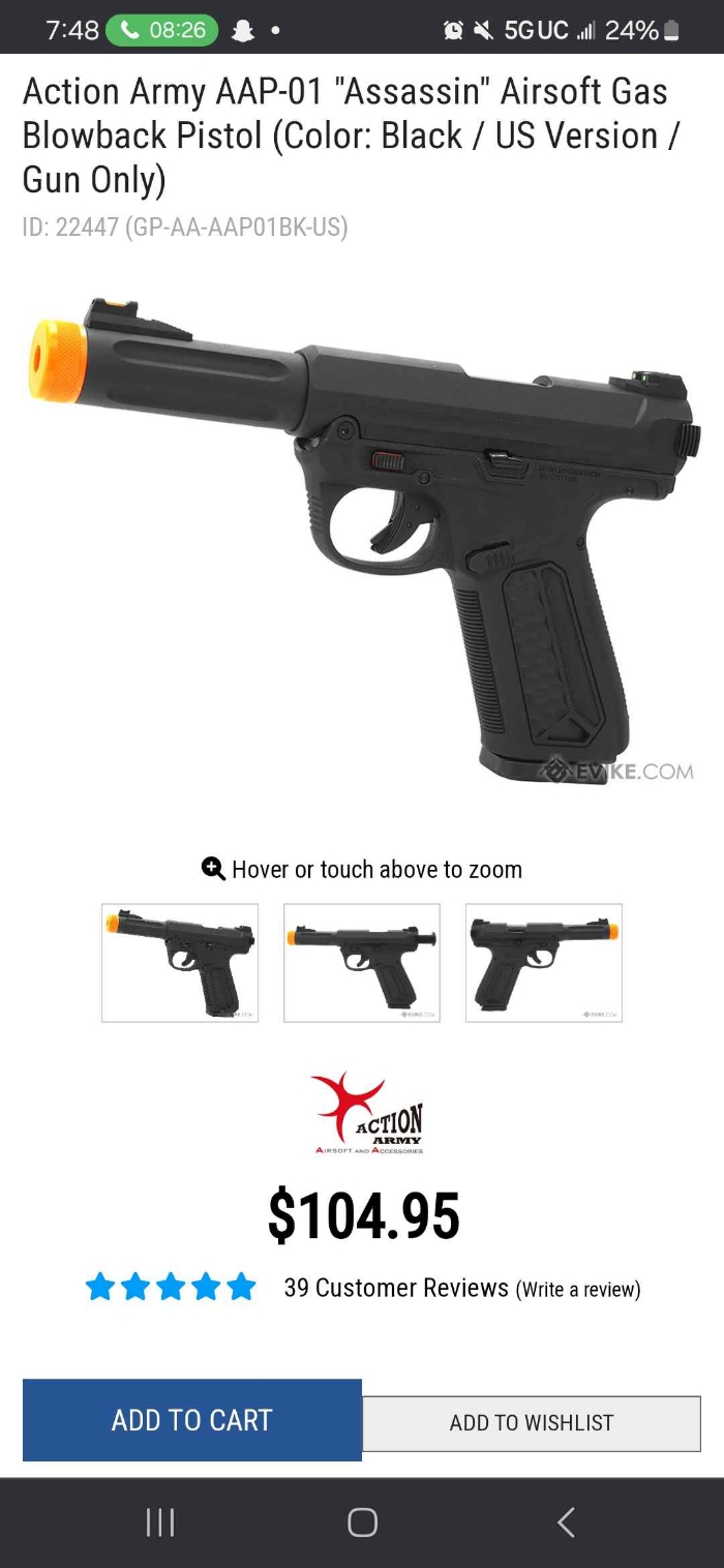Magazine Capacity: 22rds. Works with Action Army and TM-spec G-spec Airsoft pistol magazines.