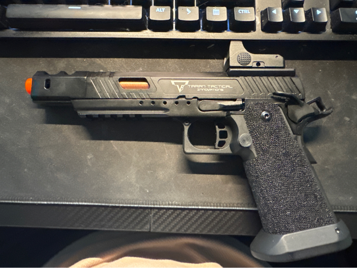 TTI x JAG Combat Master Alpha Hi Capa Airsoft Pistol (Green Gas) Bravo Combat Dot 3 MOA Red Dot 1 Extra Echo1 Extended 42round Magazine