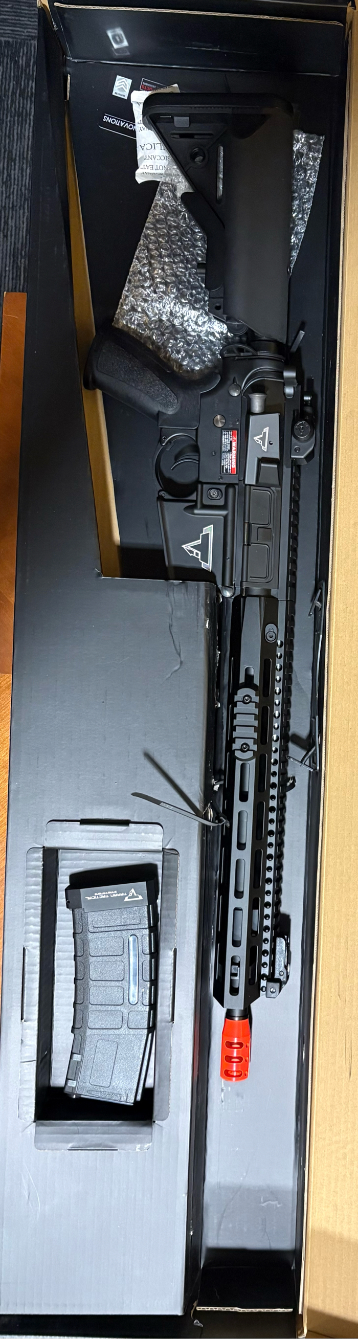 Taran Tactical Innovations M4 straight from a Evike mystery box. It was a side item to the one I wanted. Gun is opened from the box only because a