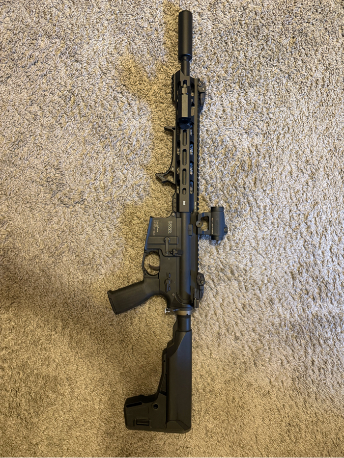 Attachments : 1. Catch lighter R tracer unit 2. Aimpoint Micro T-2 red dot sight 3. NcSTAR light 4. Forgrip