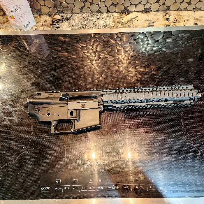 Comes as seen in pictures. G&P lower (old style) G&P upper (old style) G&P MK18 rail (old style) Everything is trademarked - comes as you see it.
