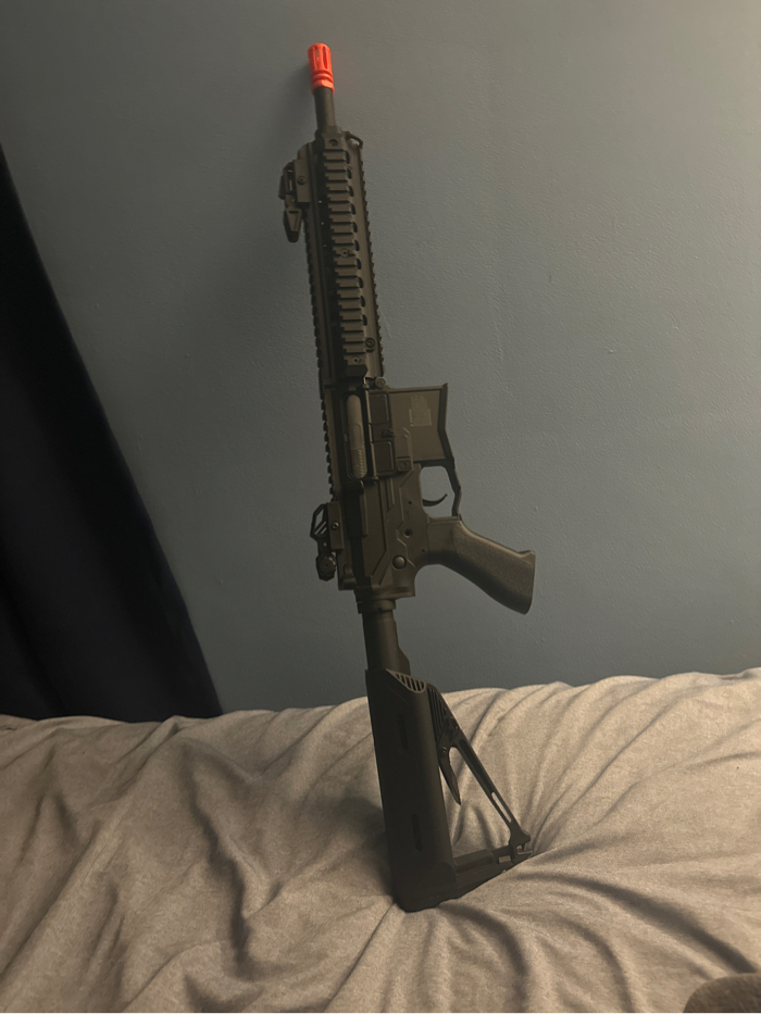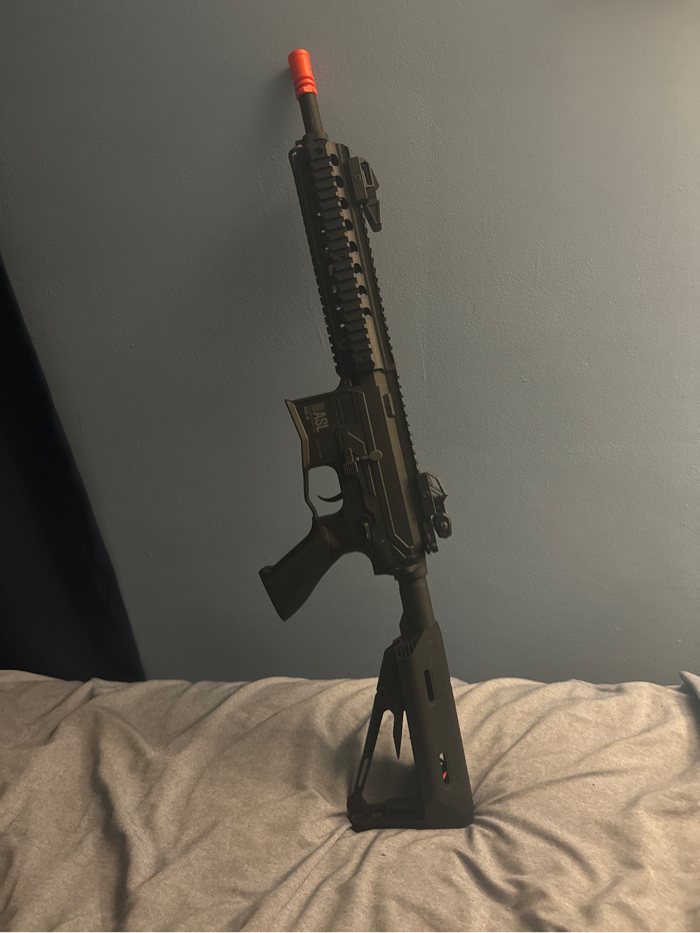 Valken asl mod 2 with upgraded gearbox. Reason for being more money is that the gearbox was $100 so your gain my loss as the rifle is $190 new