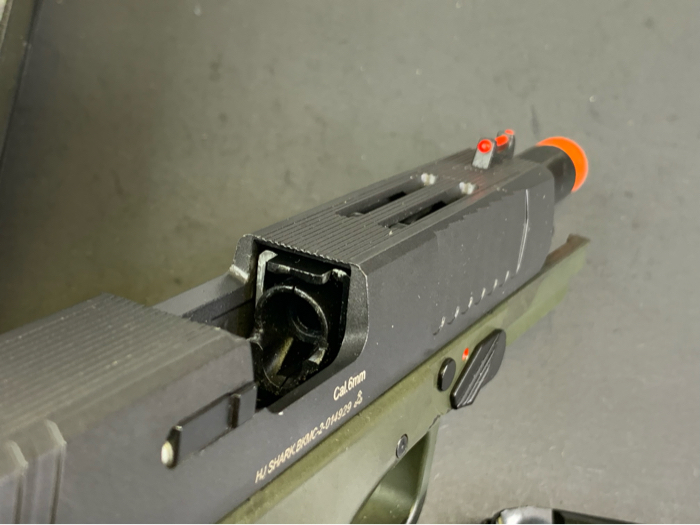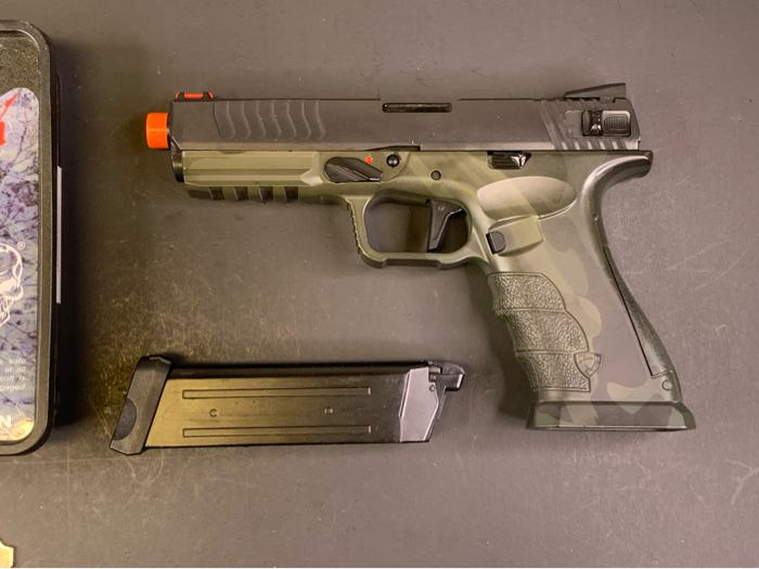 The newly designed APS XTP (eXtreme Training Pistol) series incorporates improvements based on user feedback and requests over the years by players and techs worldwide. The new XTP system boasts improved gas efficiency along with enhanced performance. High stress and high wear parts are now made of steel or aluminum to greatly improved durability and reliability. The new frame is made from high impact polymer formulated to meet Military specifications. One of the top requests was to have the consistency of CO2 but have the FPS tuned to fall within 350 FPS to meet CQB engagement limits. The pistol is also compatible with green gas magazines should a lower fps between 300-320 be required.