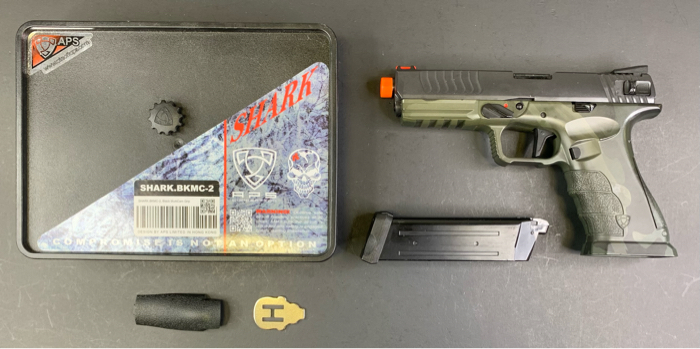 Magazine: 25+1 rounds. Compatible with APS ACP Tokyo Marui Magazines