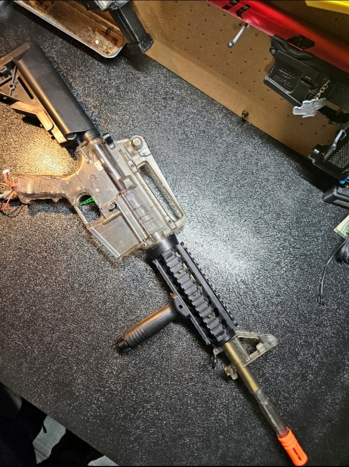 Custom built by myself took me 8 hours to put it together, mags do need to be forced in and feeds perfectly no issues, engine works perfectly aswell.
