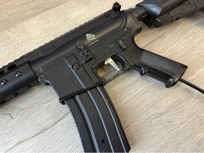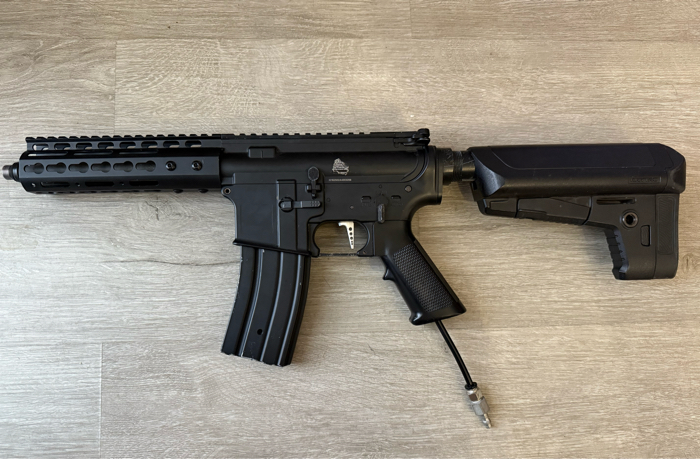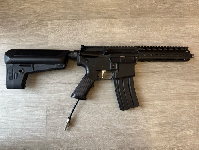 Amazing rifle extremely low priced for the great rifle you’ll be getting! Has the infamous polarstar Jack HPA engine inside, has a Krytac stock on it, and a keymod handguard! Nice length inner barrel to help hit targets a little further as well! Comes with rifle mag and FCU