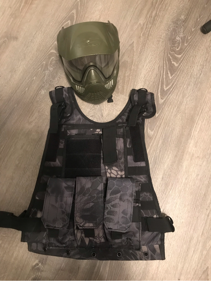 This is a generic mask and vest both are in good condition, all of the pouches for the vest are included. The vest is also signed by Jet DesertFox, I got him to sign it at airsoft palooza, i know most people dont care though