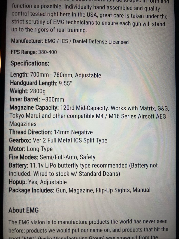 SOLD EMG / Daniel Defense Licensed DDMK18 Airsoft AEG Rifle with gate 2 titan (Model: Black / 400 FPS)