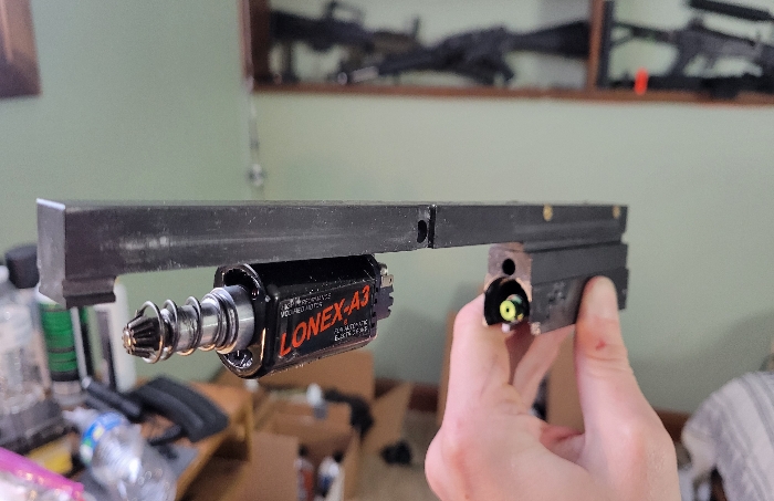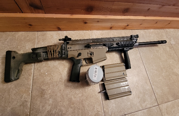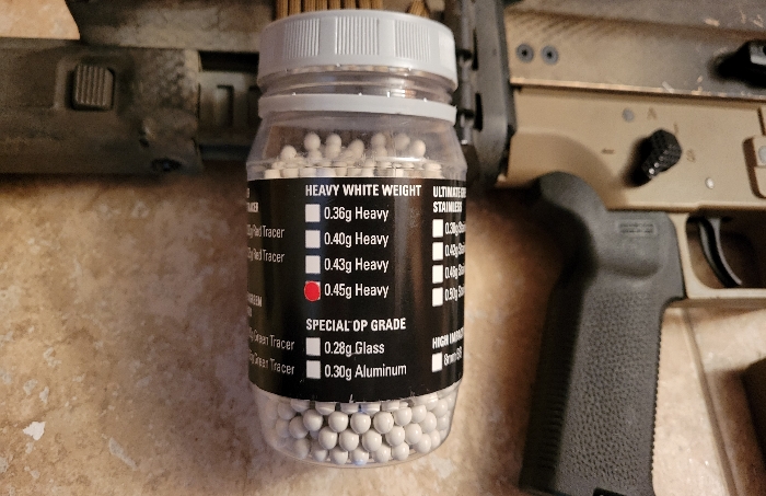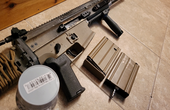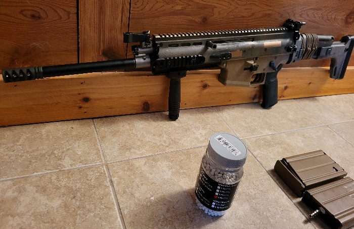 Currently tuned to shoot 2Joules with .45g bbs (included upon request) as it was going to be a DMR for me