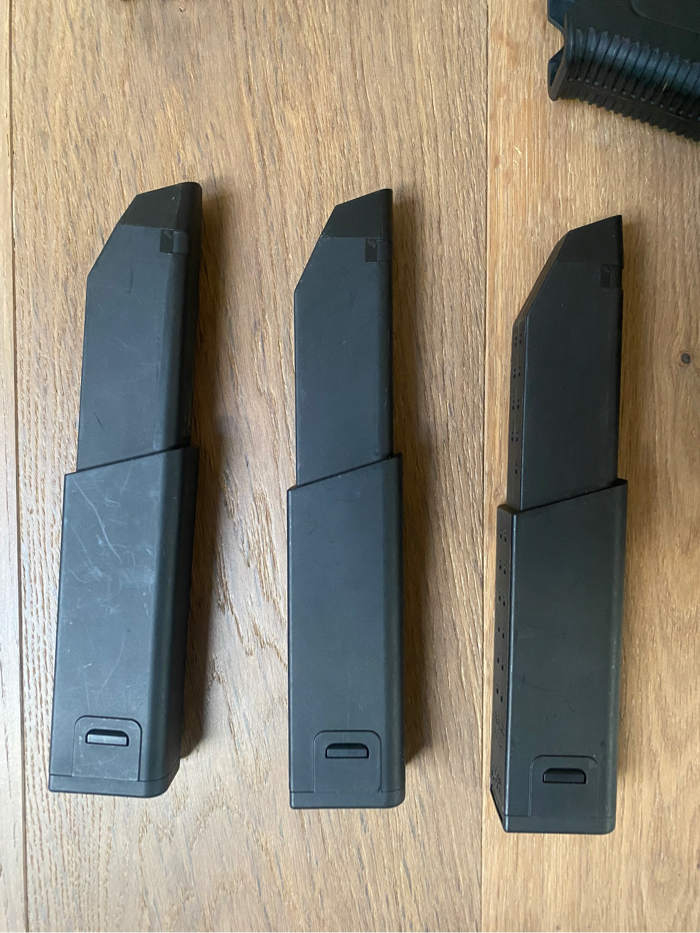 Also has 2 extra mags in addition to the one included and comes with a drum mag.