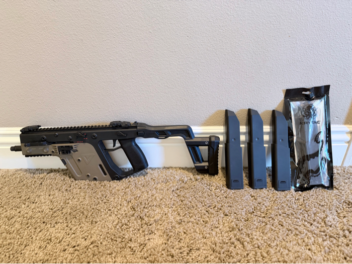 Hello there! I’m selling my Krytac KRISS Vector AEG with 4 magazines!