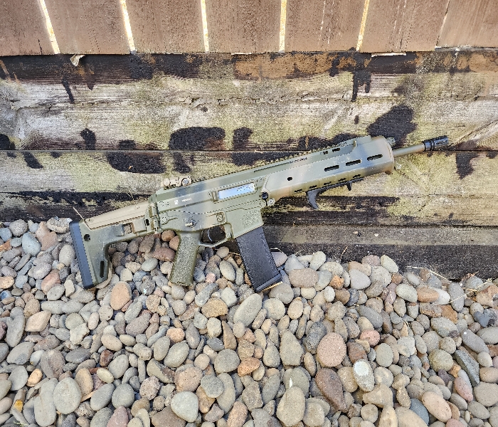 Works great without any mechanical issues. Comes with Upgraded CNC TNT LM4/Masada Hopup unit, Magpul Handstop, steel flash hider, repro magpul rear sight, and one black PTS LM4 magazine. The only cosmetic issue is that the cheek well on the stock is missing. Does not affect any function.