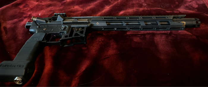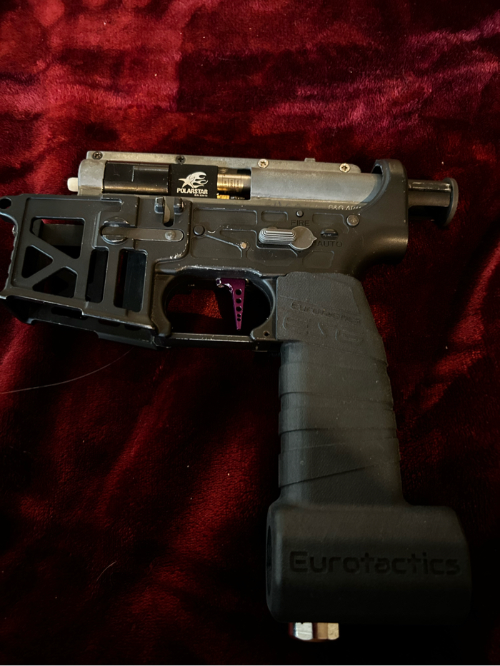 This is a polarstar rifle with a esg grip and a ninja hpa tank. Has a slight leek needs new o ring and grip need reconnected but besides that works great and shoots fast.