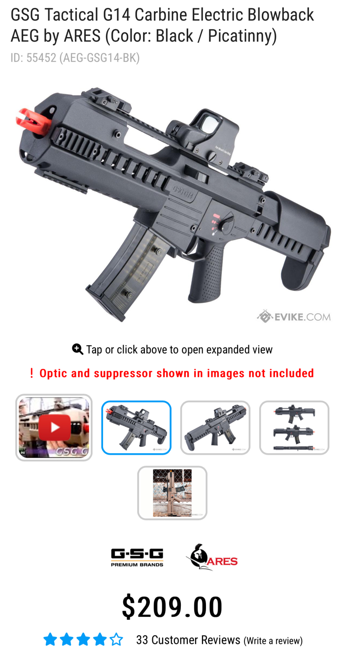 GSG Tactical G14 Carbine Electric Blowback AEG by ARES (Color: Black / Picatinny)