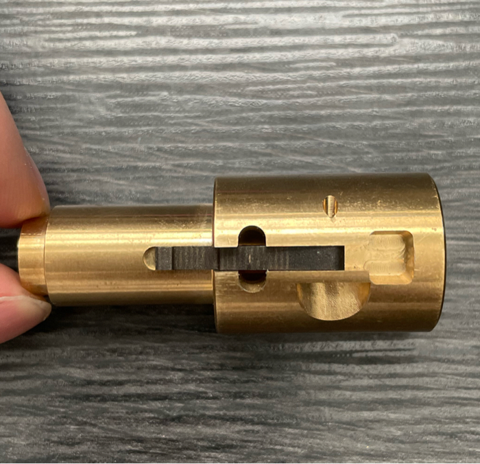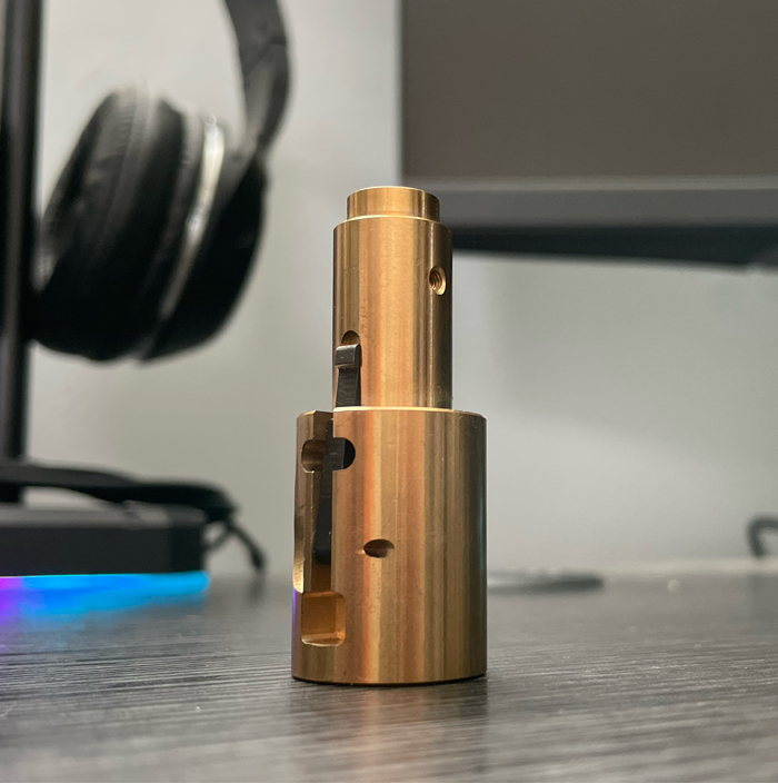 Unused brass CNC hop up chamber by SHS/PPS. Made for use in Maruzen/Well L96 style airsoft guns. I bought this for a build but never ended up needing it. Comes with three grub screws used to stabilize the barrel.