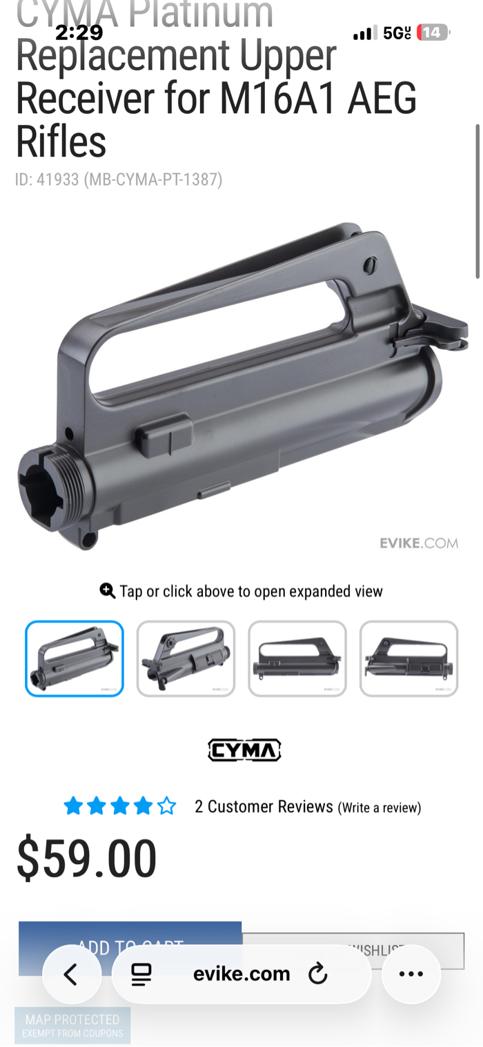 This is a Cyma platinum upper for M16 series AEGs. Originally bought it for a project but just never got to finish. It’s missing its charging handle but that’s an easy fix. Other then that it’s basically brand new with no damage or rust at all (It’s been in it box for like a year) I just need to get rid of it.