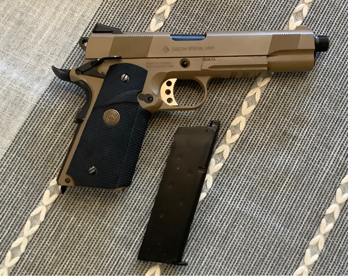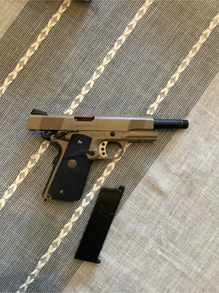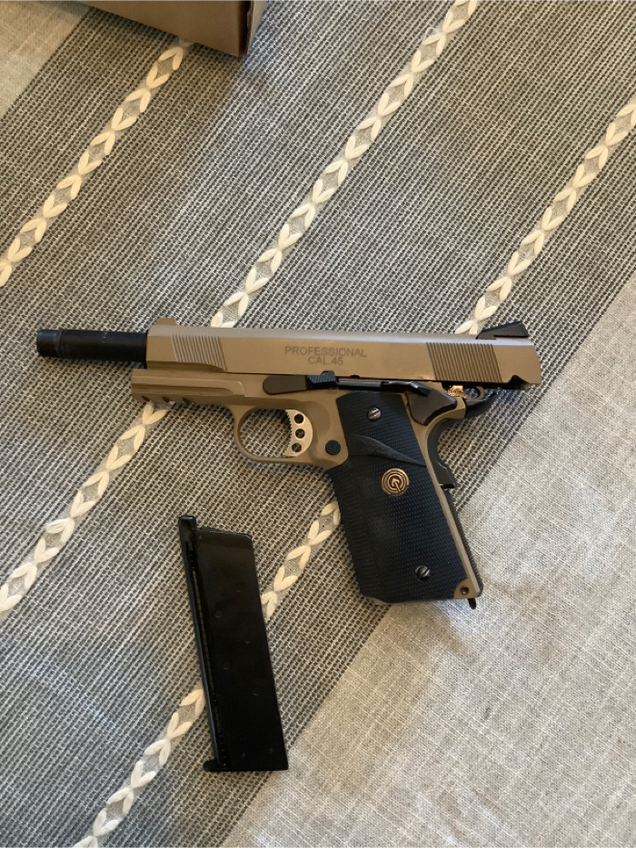 It’s a 1911 I bought a couple months back, hardly used, maybe only 250 rounds shot through it (mostly green gas) nothings done to it. Great secondary, I have used it as a primary in cqb and it did great. Asking 100$ obo. It’s a 115$ off of Airsoft gi.