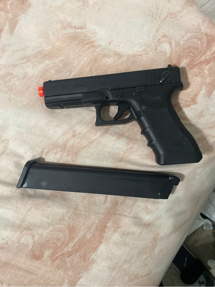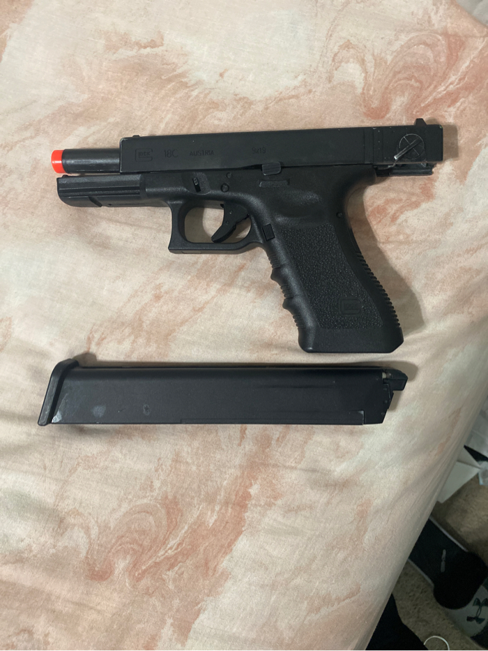 Glock 18C, used, I bought it on December 2021 and ended up going to a MilSim west in cloves, now I want to invest on airsoft replicas that fit the factions I play with. Comes in the original box, I kept it since it’s only been approximately 5-6 months with it. No modifications have been done it is all original parts.