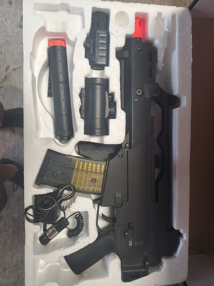 Plastic construction with plastic gear box. Maybe a good starter gun. Only thing that is missing from the box is the fore grip.