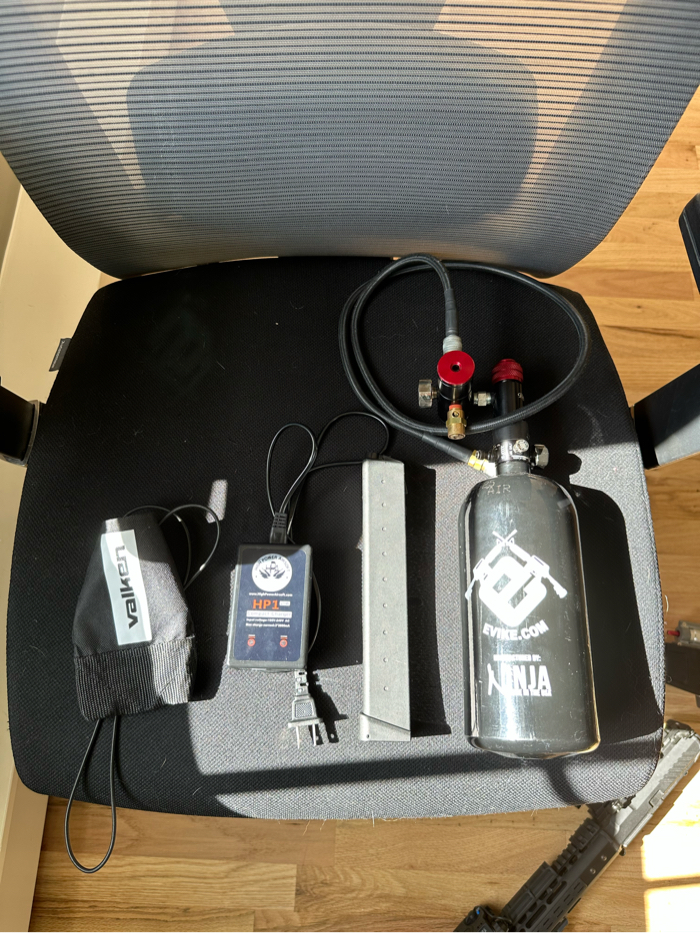 Charger, Battery, Barrel Cover, One Hi-Cap ARP9 Mag, AND FULL REGULATOR/ TANK/ LINE ALL INCLUDED.