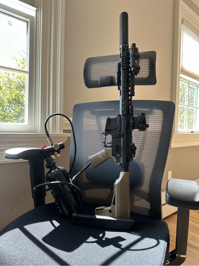 Magpul pistol grip with braided IGL line and a PTS stock.