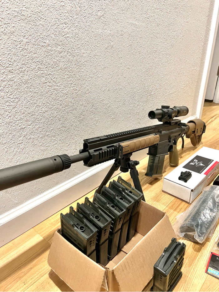 Fully broken in, no chopped bbs or “flyers” - this thing is an absolute beast. 300+ range, and surprisingly accurate for such a stout recoiling system. Currently semi “locked” with a subtle tapped screw, but can be removed for the giggle switch/if you choose to convert it back to a 417 and use it more as a battle rifle.
