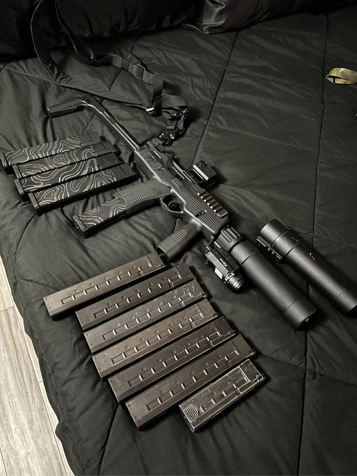 ***SOLD VIA CA***Cow cow springs, upgraded piston, TNT retro kit, two cans and a plethora of KWA mags as well as new V mags. Kwa mags all have some feeding issues as they all do at times.