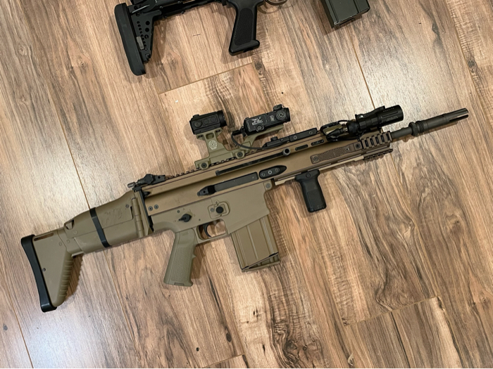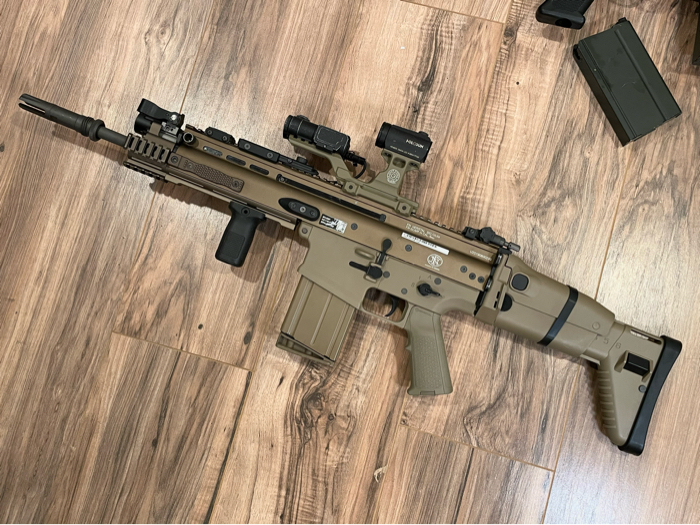 WE SCAR H with new upgrades: Maple leaf 6.02 inner, Autobot 70degree hopup, RAtech NPAS air nozzle, headquarters 150% nozzle return spring. External: PMM pic rail set, magpul MIAD grip.