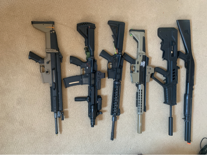 This is my entire collection of airsoft gear that I have collected over the years. I have gotten out of the sport and have been out for a while and want to pass all of it onto a new home. Most of the guns are non op since they have been sitting for a while and all are stock internally. The only one working right now is the KWA carbine. I am not sure what the airsoft market is today for a kit like this so I am testing the waters. Pretty much ready for a field day just need to visit the mechanic and get some batteries. I also have a bunch of stuff not shown here so I will just throw it in as a bonus. Shipping is NOT with the total price we can figure that out later. I would prefer to meet locally in Socal.