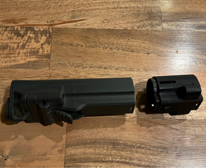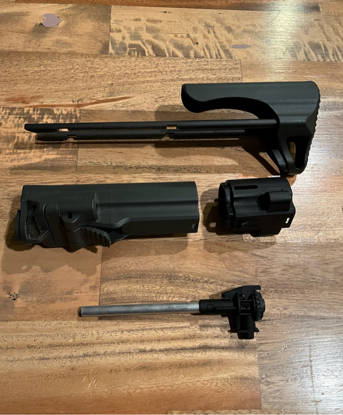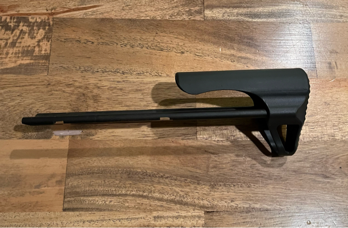 The color for the stock is battleship gray, and for the stock extender, it’s black