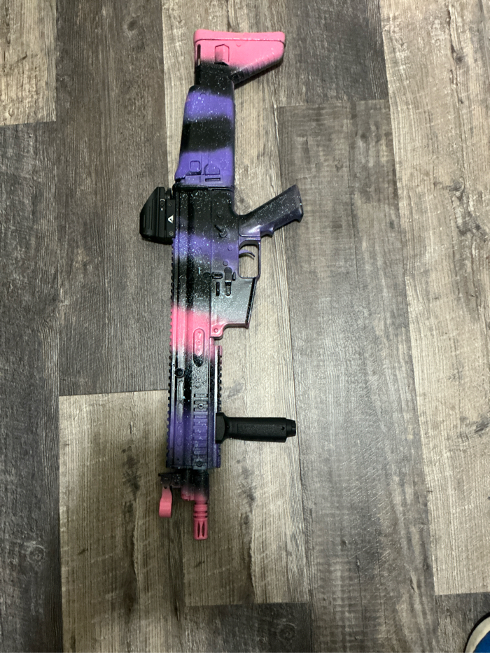 Cod zombies inspired pant job on a classic army scarL it is wired to deans and has a basic mosfet. Not selling the sight and it does come with a 120 rd mid cap mag and original box I can pant the mag if wanted has not been fielded