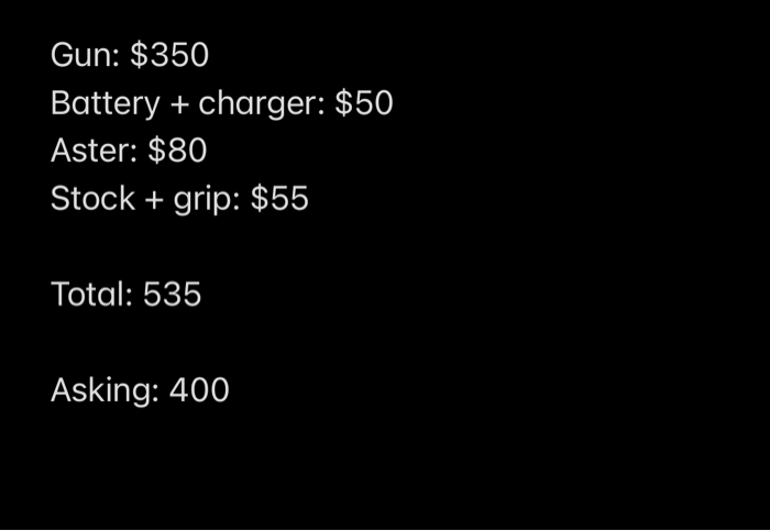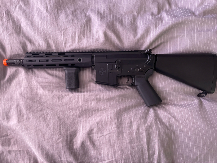 Full metal Umbrella AEG with gate aster, 13:1 gears, stubby stock (requires a longer screw), m-lok rail with grip, and deans connection. Includes battery + smart charger. 25-33 rps, 350 fps. Used 1-3 times. (Marked down price) (shipping varies)