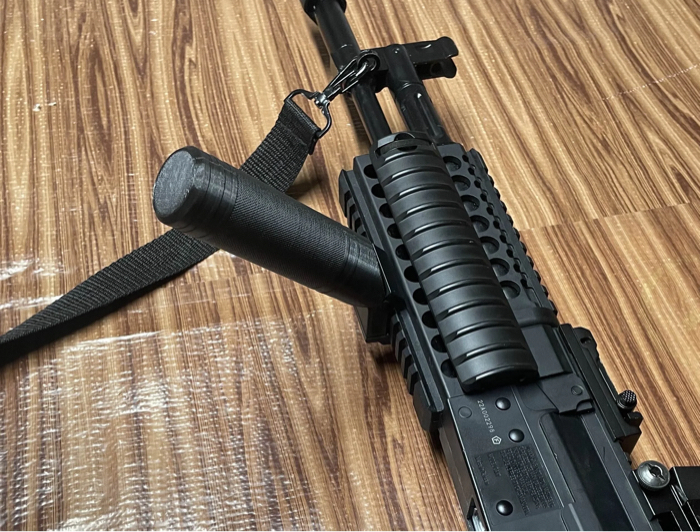 Great way to improve your ergonomics and gives you a comfortable grip. Works great with drum mags. Picatinny rail mounted