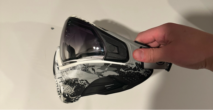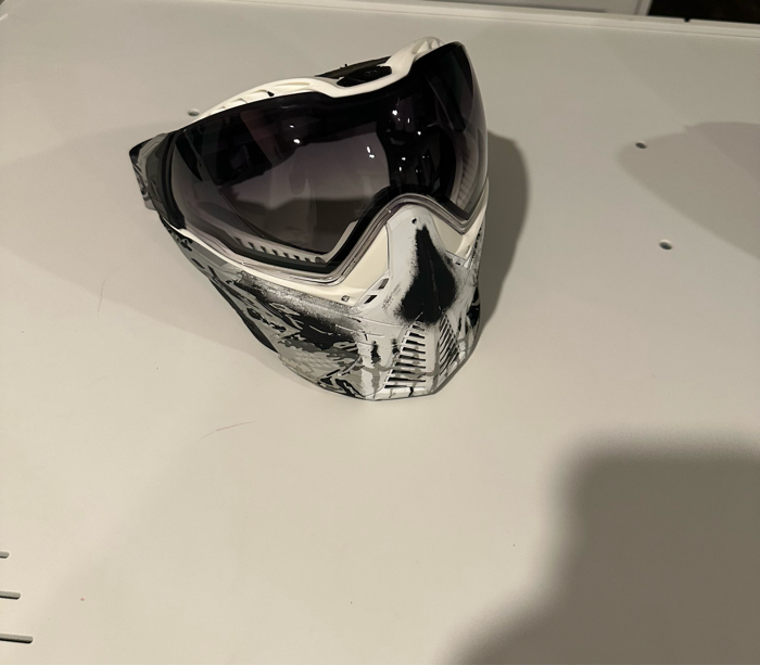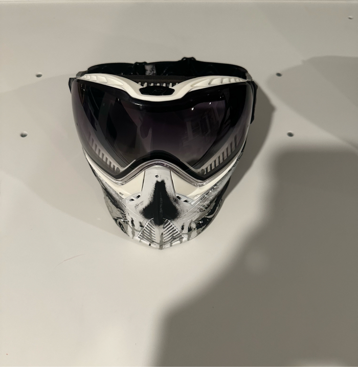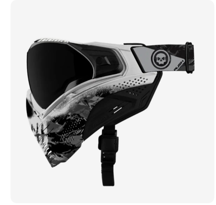 Infamous push unit goggles grey headhunter. Comes with goggles basic chin strap and green head strap. Gradient clear lens.