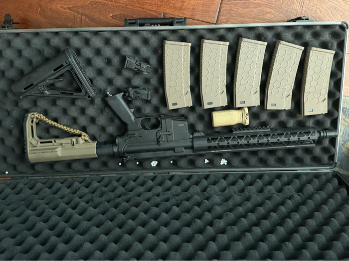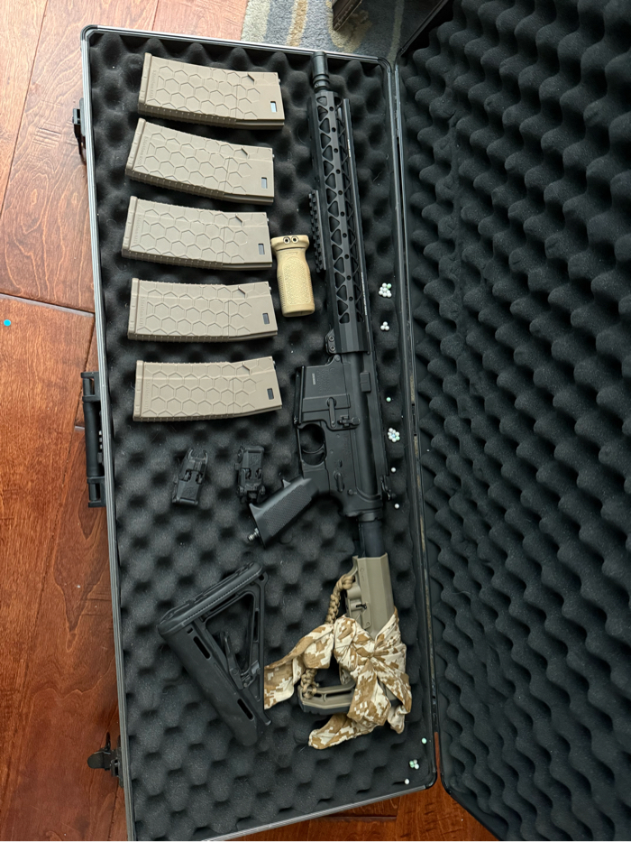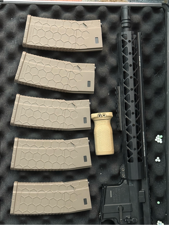 Tippmann M4 carbine caliber 6 mm, 5 Hexmags, insulated hard case, and other. Listing is for the components in case in the picture.