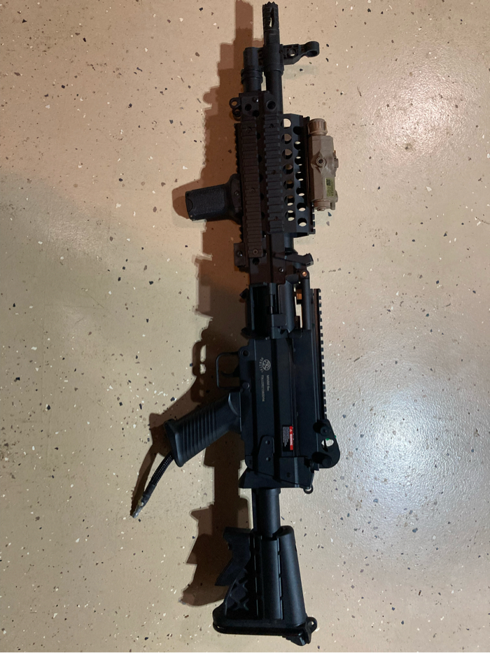 Selling off my m249. It’s what I believe is a cybergun fn licensed mk46. It’s an all polymer body that’s in great shape. It has inner barrel hop up and gearbox shell