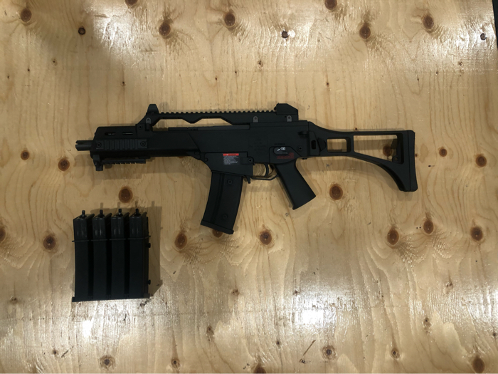 Relive the CoD4 days with this gorgeous G&G G36C with 5 G&G mid caps. Gun is practically brand new, no issues whatsoever 9.5/10 condition. However one of the mags clip is broken so that mag can’t be clamped together.
