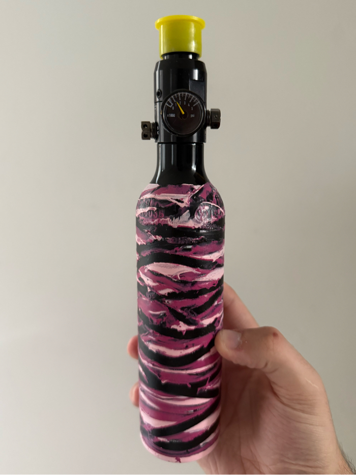 Brand new never used paint job done a week ago, really nice quality job done by my friend. Never fielded quality control checked works great, currently filled with air. :)