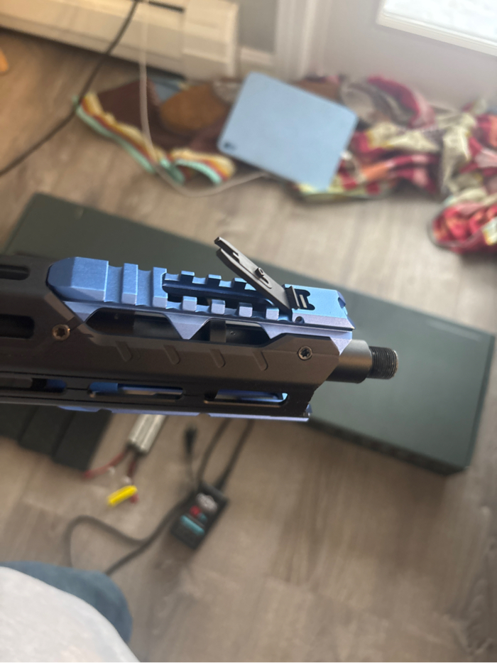 It is an electric airsoft gun (AEG) utilizing a standard Version 2 metal gearbox