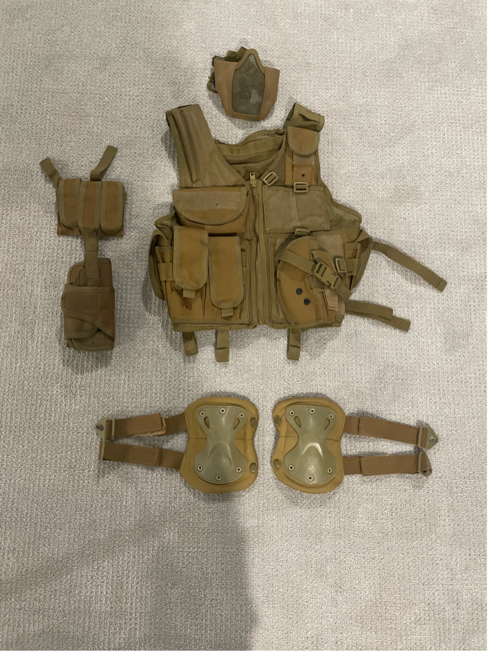 Includes: Tactical Vest Knee Pads Holster 3-capacity mag holder face mask