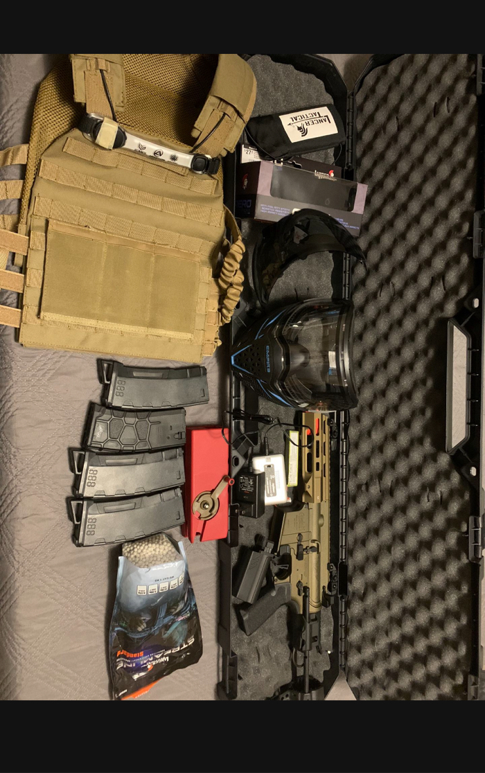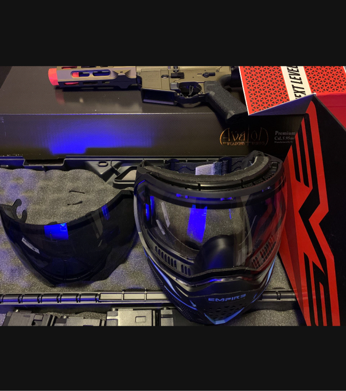 Getting rid of the whole set everything was used once, comes with everything but case. Airsoft is Avalon Calibur ll and mask is Empire.