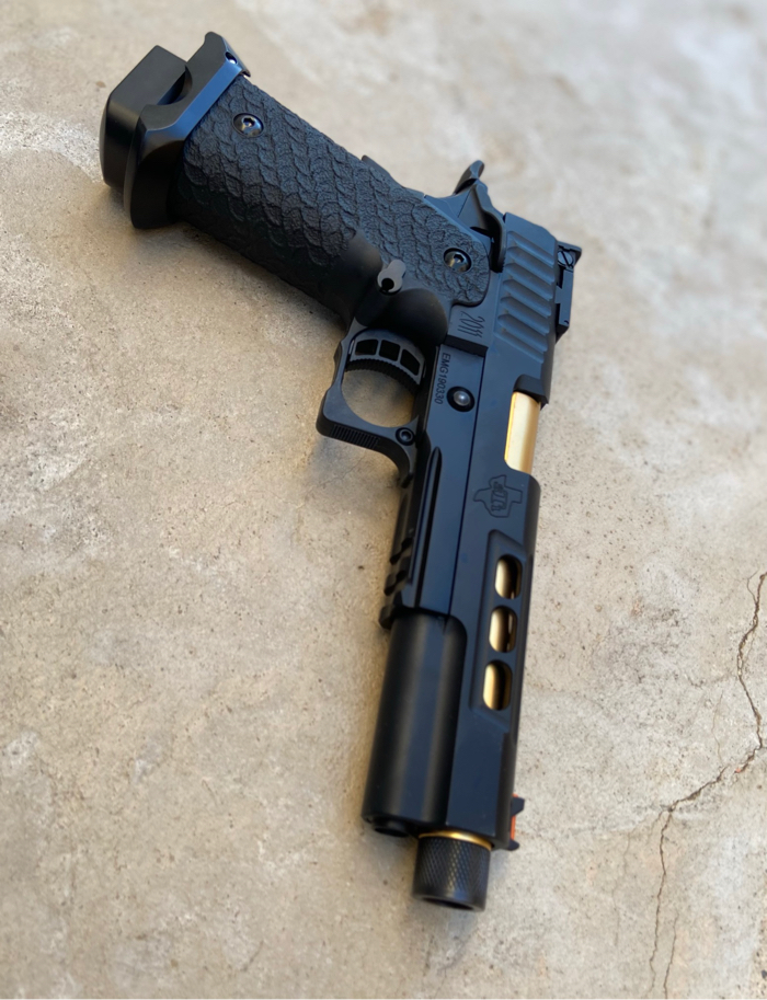 New in box, full metal high grade EMG / STI SV3 2011 Hi capa gas blowback pistol. One of the best out of the box performance pistols. C02, green gas, and propane ready . Built durable and able to withstand all sorts of environments and damage .