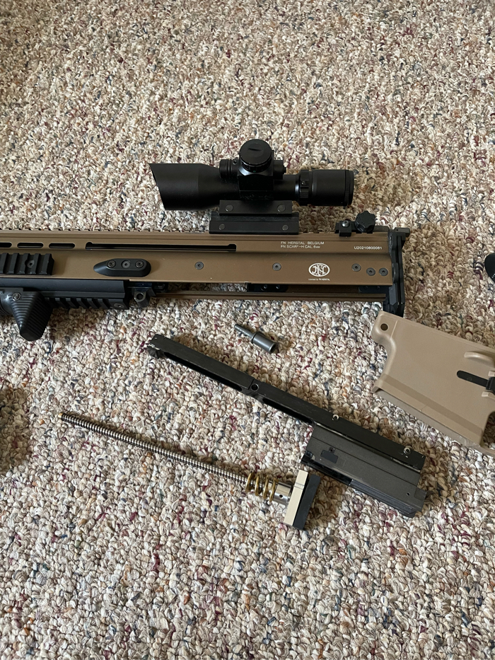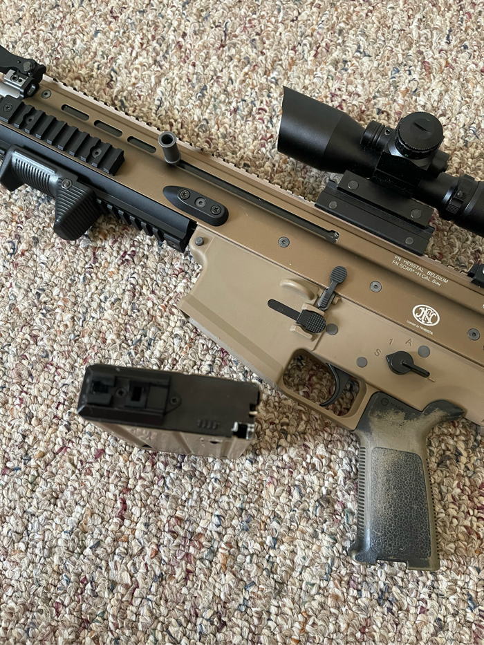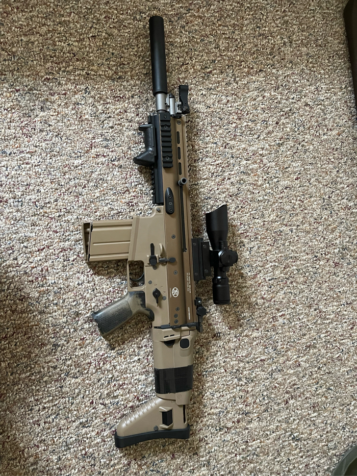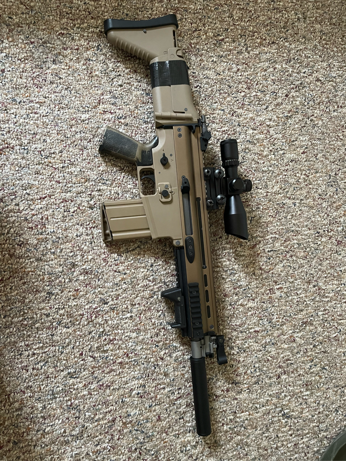 Here I have a beautiful GBB Scar H that I have not used on the field yet. I am the second owner and this thing looks absolutely stunning. The stock is taped purely for cosmetic purposes and the grip has seen some wear. Everything else is perfect, just like new. Currently have it as a DMR setup, can provide shooting videos or chrono upon request.