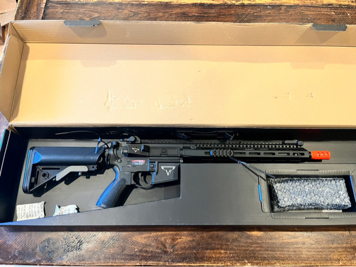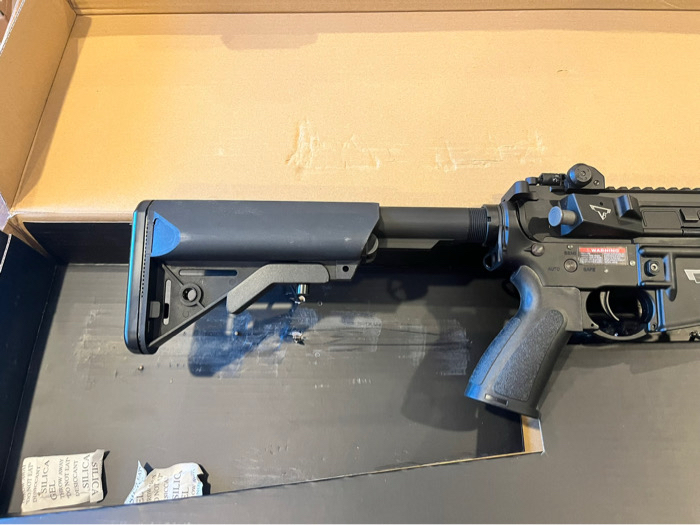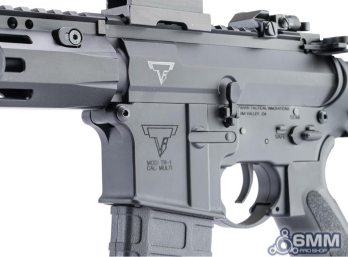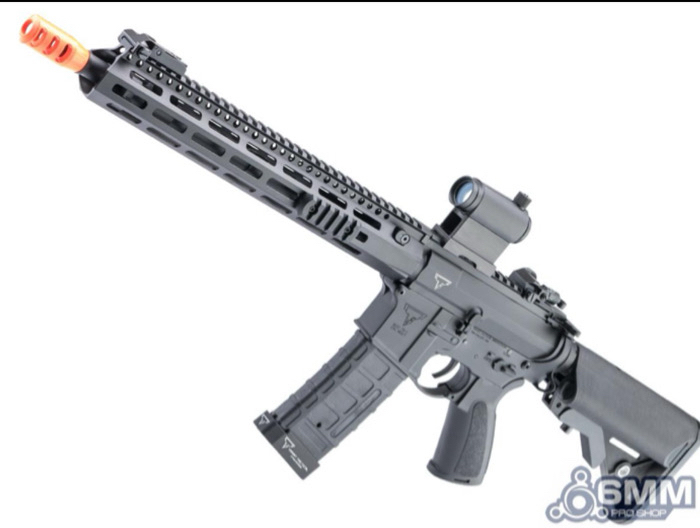 Brand new in the box. Test fired perfectly, zero issues. Features Durable full metal aluminum alloy construction Licensed Taran Tactical replica with full engraved markings on upper & lower receivers as well as the magazine 13" M-LOK handguard w/ 2x Picatinny segments for mounting grips, lights, lasers & other accessories Uninterrupted top Picatinny / 1913 rail for optics Taran Tactical-licensed 300rd polymer hi-cap magazine with extended baseplate 3 port muzzle brake to match the real TR-1 ultralight Ergonomic motor grip for additional comfort 6 position adjustable crane-style stock with plenty of battery space and QD sling swivel mounts on either side Flip-up front and rear iron sights Manufacturer: 6mmProShop. OEM: Double Bell (Under Licensed by TTI) FPS Range: 370-390 Specifications: Length: 800mm - 920mm (Adjustable) Weight: Approx. 2700g Inner Barrel: Approx. 375mm Magazine: 300rd Hi-Cap. Works with Matrix, G&G, Tokyo Marui and other compatible M4 / M16 Series Airsoft AEG Magazines Thread Direction: 14mm Negative Gearbox: Ver. 2 8mm, Fully Upgradeable Motor: Long Type Fire Modes: Semi/Full-Auto, Safety Muzzle Velocity: ~1.34 Joules (tested with .20g BB) Battery: 11.1v Small Buffer Tube Type LiPo recommended (Battery not included. Wired to buffer tube w/ Small Tamiya Connector) Hopup: Yes, Adjustable Package Includes: Gun, Magazine, 2x M-LOK Segments Optic is not included